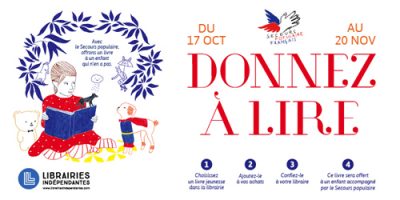 Le principe de « Donnez à lire » est simple : choisissez un livre jeunesse dans ces librairies, ajoutez-le à vos achats, confiez-le à votre libraire, Ce livre sera offert à un enfant accompagné par le Secours populaire.
