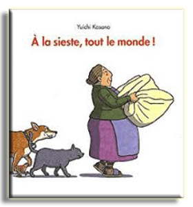 Ecrite à la manière d’une comptine, cette histoire simple , courte et délicieuse, qui nous vient du Japon et qui montre le bonheur de faire une sieste est un véritable moment de douceur. Les personnages sont adorables et chaque page forme comme un tableau. Les mimiques et positions de chacun traduisent un abandon total. Rimes, onomatopées, texte répétitif sont parfaits pour les tout petits.